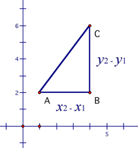 The line length The length of the line segment joining two points will relate to their coordinates. Have a good look at the diagram The length joining the point A and C can be found by using Pythagoras' Theorem: