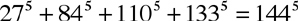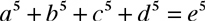 Something for you to do: First write down Euler's conjecture in algebraic notation. Try combinations for n>5. No known solutions are found so far!