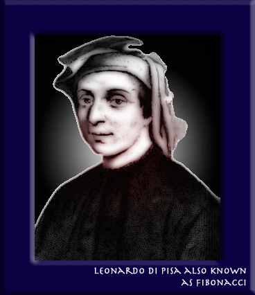 Fibonacci born 1170, died 1250 in Pisa, Italy Fibonacci's real name was Leonardi di Pisa. He lived in the 13th century in Italy, and wrote a very famous mathematical book Liber Abaci - meaning Book on Calculation (abaci-abacus). Fibonacci was sometimes called Bigollo, which means 'traveller' and is it very probable that he got this nickname because he was travelling a lot. But Bigollo also means 'good-for-nothing' so - who knows... Leonardo Pisano is better known as Fibonacci - son of the Bonaccis... and his other name Pisano comes from the place where he lived most of his life, Pisa, which is famous for its leaning tower. Building of the tower began when Fibonacci was three. He is most famous for his description of the number sequence, which in 19th century was given the name 'Fibonacci numbers' after its inventor. The sequence is made by starting with two ones, and adding them up, then to make every new term the previous two terms need to be added together. It starts like this 1, 1, 2, 3, 5, 8, 13, 21, 34, 55, and so on... He described this number sequence in relation to the way rabbits breed: