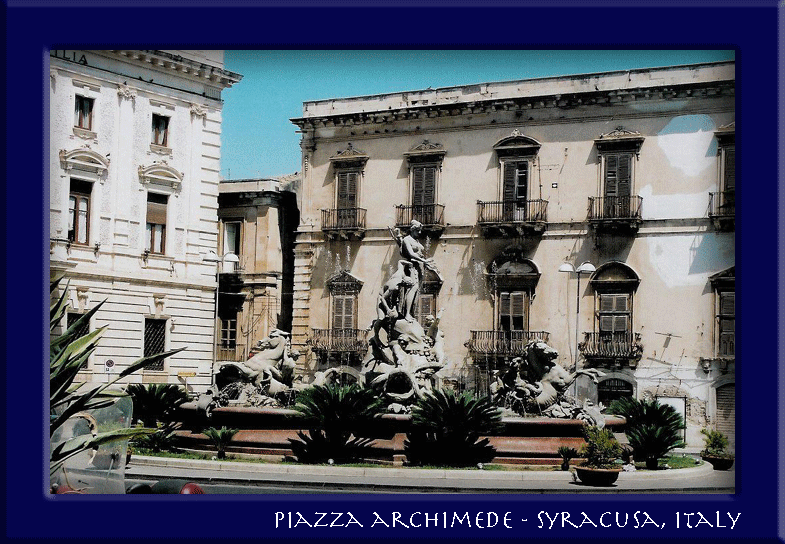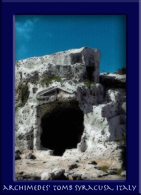 Archimedes lived and died in Syracusa, on the island of Sicily in Italy. Here is a picture of his tomb. Grateful citizents of Syracusa named a main square after him - have a peek, but you really must go to Syracusa to see how beautiful it is!
