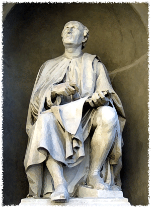 Brunelleschi, Italian architect and artist (1377-1446) Linear perspective was invented by an Italian architect called Filippo Brunelleschi. He became very famous even in his lifetime and was buried in a church Santa Maria del Fiore - the picture of his statue is placed just outside of the church, and Brunelleschi appears as if he is looking at the dome of the church. It is the same church that he drew in a first ever 'scientific' perspective drawing, and the process of which he described in a letter written in a letter in 1413. Santa Maria del Fiore in Florence, Italy, famous for Brunelleshi's perspective drawing Linear perspective is based on a few very simple principles: that the parallel lines, which we know don't really meet (unless in some other type of geometry) do seem to meet to us when we look at them going away from us. For example, if you stand (but just imagine it don't do it!) at the train tracks and look at them going away from you, they will appear as if they meet at a distant point. This point is called the 'vanishing point'. The line where all the vanishing points (of these horizontals) lie is called 'horizon'. Linear perspective was further developed by Italian artists and mathematicians, such as Alberti and Piero della Francesca, and was later one of the most admired subjects of study of a famous English mathematician Brook Taylor (1685-1731), who is better known for his work on Taylor Series. Taylor series is an approximation of a function calculated as a sum from the values of its derivatives at a single point. Some of the famous paintings linked to the development of perspective are to be seen to the side of this text. Click on the images to enlarge them.