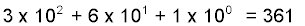 There is an interesting story to the binary system. It transpires that the first mathematician to write about it was an Indian called Pingala, who wrote about it in his work 'Chhandah-shastra' around the 500 BC (although most of the scholars now think that he lived between 300 and 200 BC). Nothing much happened to this system until the 18 th century, when Leibniz wrote about it in his Explication de l'Arithmétique Binaire in 1705. There he explained the ideas about the system - how to write the numbers and how to compute using all operations that you would normally in other systems. Binary number system really made it big through the work of a British mathematician, George Boole. Boole published a paper in 1854 in which he used only two values - true and false, and constructed a whole system of algebra and logic which are now known as Boolean algebra and Boolean logic. But how does it work? Well binary system has only two digits to represent all values: 0 and 1. (In computing this is used in such a way that 1 is produced when there is an electrical impulse and 0 when there isn't.) So let us write few numbers in the binary. First let us look back on our own decimal system and what numbers in it 'mean'. For example, you have a number 361. This number can be 'broken' down into in fact, the multipliers are powers of 10, so we can write this neater as In decimal system then, you have the powers of 10 - and you have 10 digits (0,1,2, etc.). In a binary system you only have powers of 2 (as you have two digits only: 0 and 1). If I write