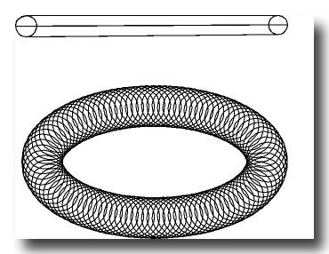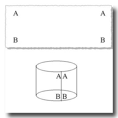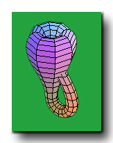 As mentioned on the web page which introduced us to Möbius strip, investigating and studying properties of it belongs to a field of mathematics which is called topology. Topology is concerned by the classification of surfaces and by looking at their common and distinguishing properties. We will investigate Möbius strip by using topological approach. First consider cylinder. It is a commonly known solid, which you can make yourself by cutting a rectangle from a piece of paper and joining the corresponding sides. In other words, the vertices of your rectangle that are up remain up and the vertices of your rectangle that are down remain down and the two corresponding edges are just joined (use tape or glue). Cylinder has two surfaces - inside and outside. Now consider using the same strip, but joining the top of the left-hand side edge with the bottom of the right-hand edge. You will get Möbius strip. Does Möbius strip have two surfaces? Try to explain. Cut your Möbius Band down the middle. What is the result? Write a description of what happens. ! Next cut your new strip down the middle again. What is the result? Explain. ! Make another Möbius Band. Cut it not down the middle but one third from the edge. What is the result? Explain and draw some conclusions. ! Form another strip of paper, and this time glue the ends together with a twist of 540 (three times what you did originally to create your first Möbius strip) degrees. Again we have a surface with one edge and one side. It also is a Möbius Band, but the way it is put into our three dimensional space is different from the previous one. This is an important change from the original Möbius strip. Try to explain the difference between the two in terms of the objects themselves the way they are part of a space. Cut this new object down the middle. What happens? Explain.If you think of two dimensional strip (rectangle) from which you started as a model which you can apply in other dimensions, than you can do the same thing with a torus. It would be much harder to make; so here are some images to help you imagine the process. First you have a kind of tube which you just use as it is and join the two ends to get a torus. But if you use the same principle that you did for making Möbius strip to a tube, you will get a Klein bottle. Klein bottle doesn't have inside nor out - they are the same. If you manage to make one, try putting some liquid into it and you'll see!